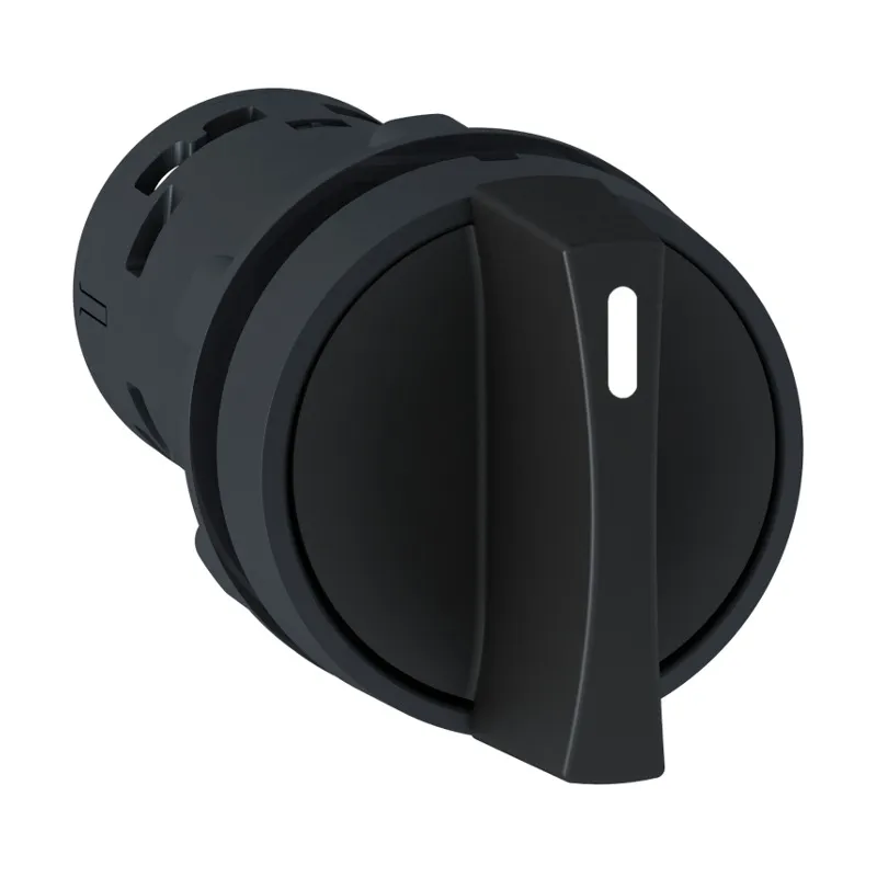 Переключатель со стандартной чёрной ручкой, 1 НО контакт, 2 положения с фиксацией. НО контакт замыкается в крайнем правом положении, в левом положении контакт разомкнут. Комплектное устройство готовое к монтажу.
