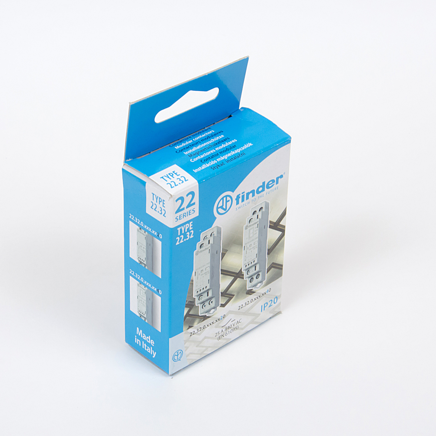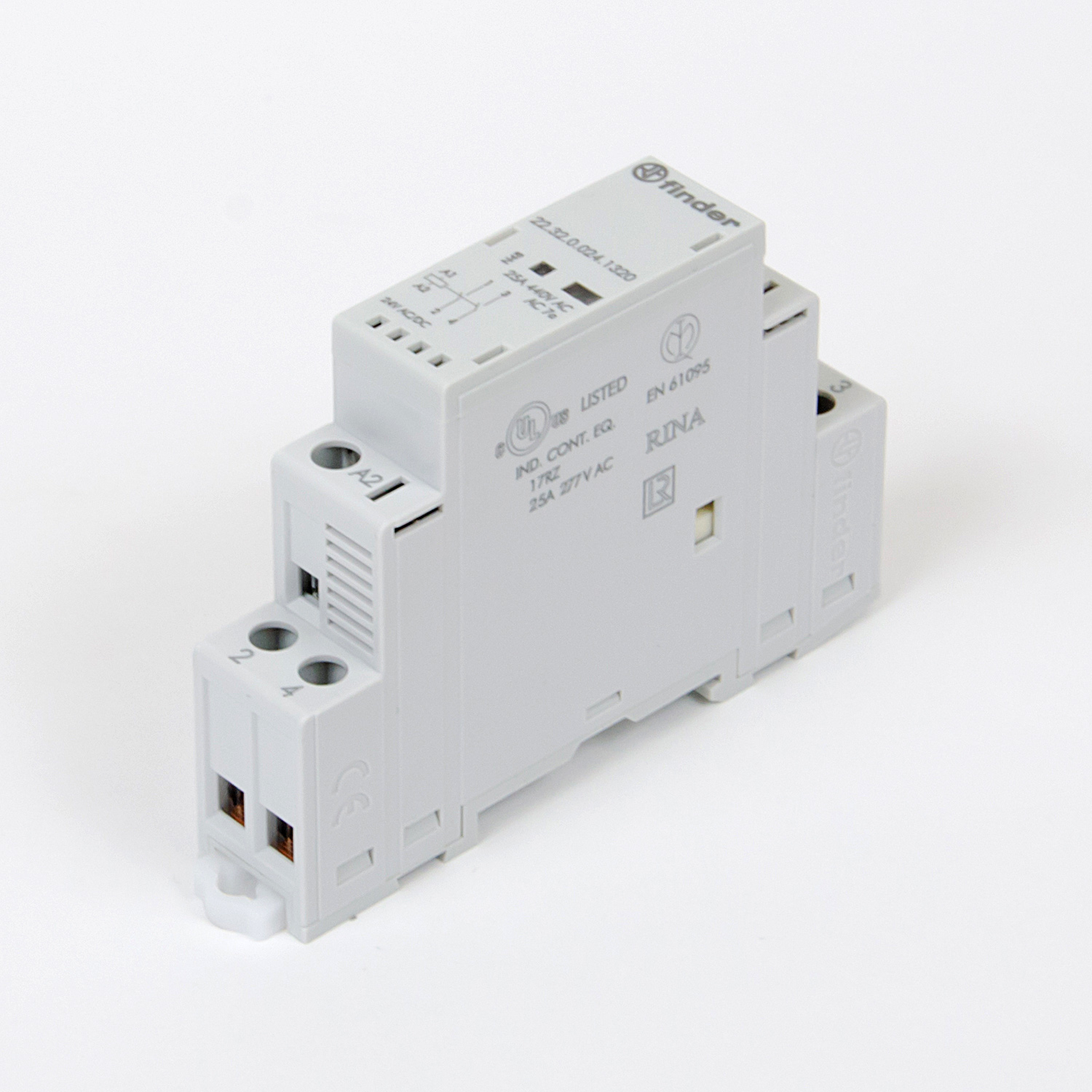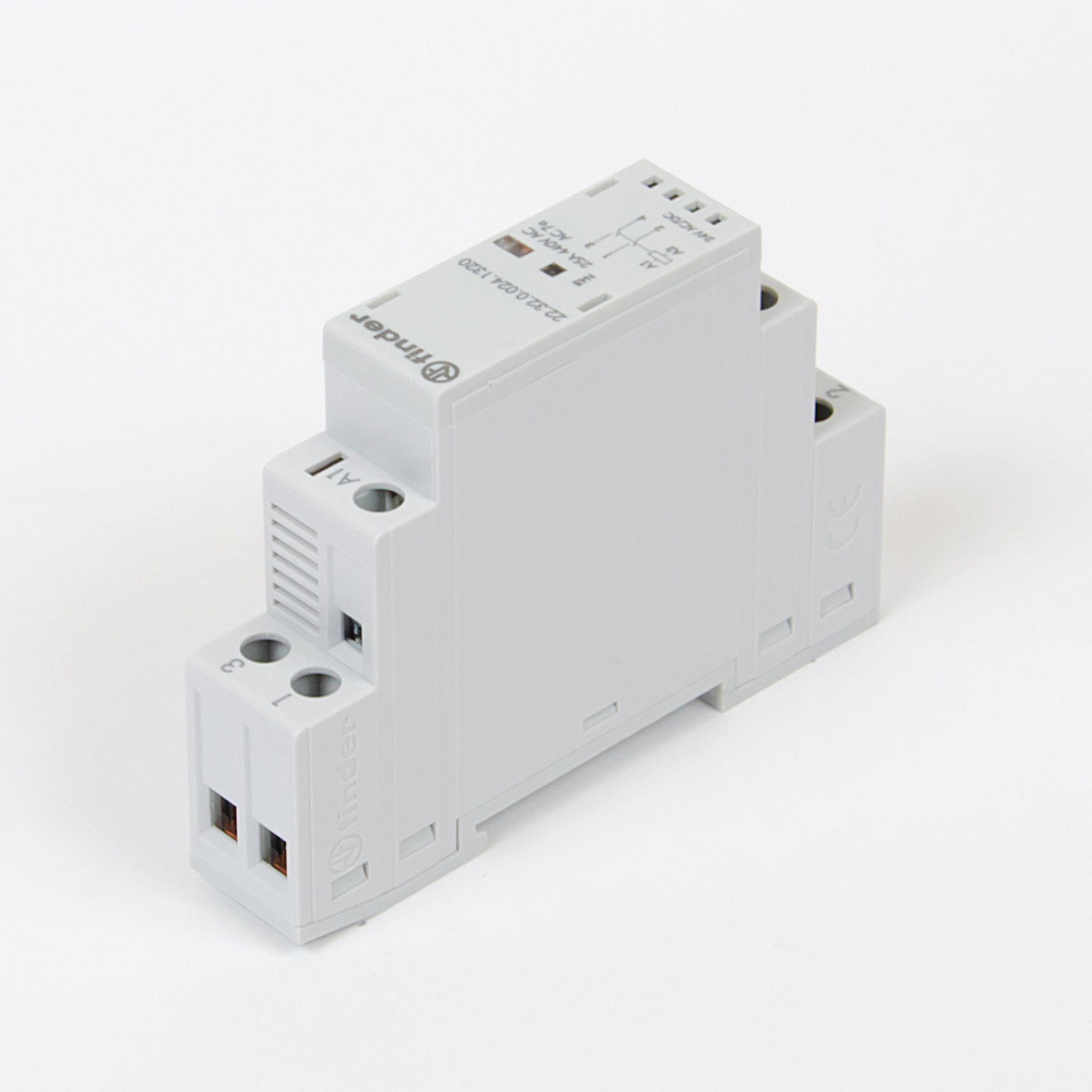 Модульные контакторы 22 серии Finder. Модульные контакторы включают и выключают свет, отопление, вентиляцию, подачу воды по сигналу другого устройства: контроллера, реле или термостата.