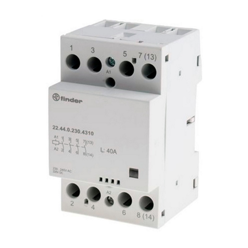 Модульные контакторы 22 серии Finder. Модульные контакторы включают и выключают свет, отопление, вентиляцию, подачу воды по сигналу другого устройства: контроллера, реле или термостата.