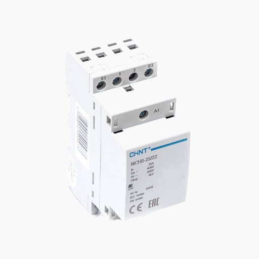 NCH8 — Серия контакторов Chint в модульном корпусе для установки в один ряд с модульными автоматами без нарушения эргономики модульного щита. Они используются в качестве дистанционного переключателя для управления нагрузкой с категории AC-7a и AC-7b: безиндуктивная нагрузка или низкоиндуктивная нагрузка. По внешнему сигналу контакторы включают и выключают свет, электрический котёл, бойлер, электродвигатели насосов и вентиляторов. Для управления требуется малая мощность, например, включением контактора можно управлять с помощью кнопки, реле, термостата или выхода программируемого контроллера.