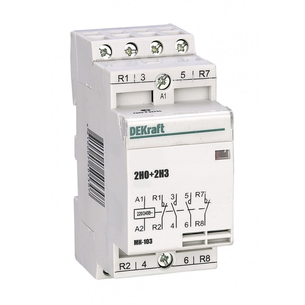 18062DEK | Модульный контактор 2НО+2НЗ 20А 230В МК-103, Dekraft