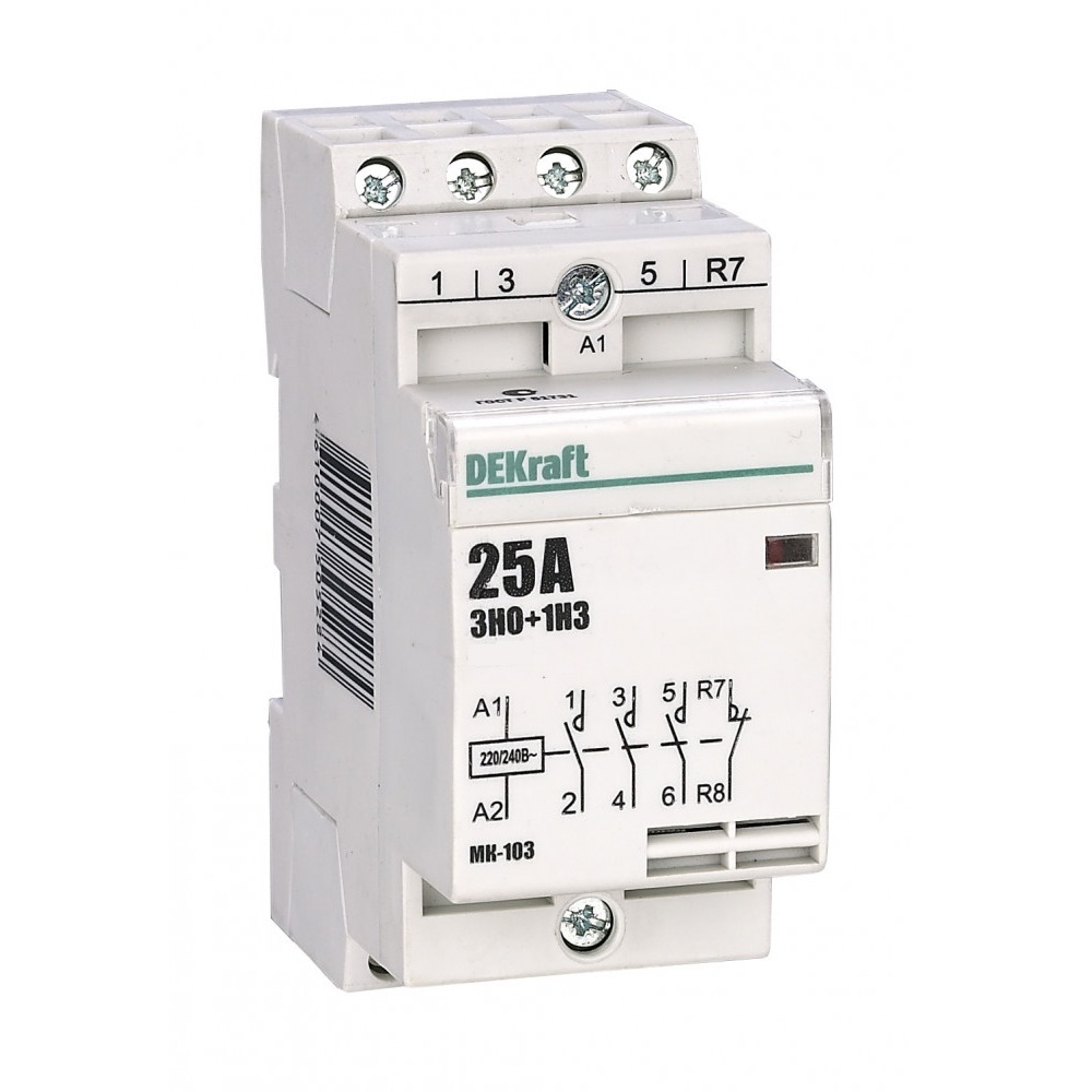 18068DEK | Модульный контактор 3НО+1НЗ 25А 230В МК-103, Dekraft
