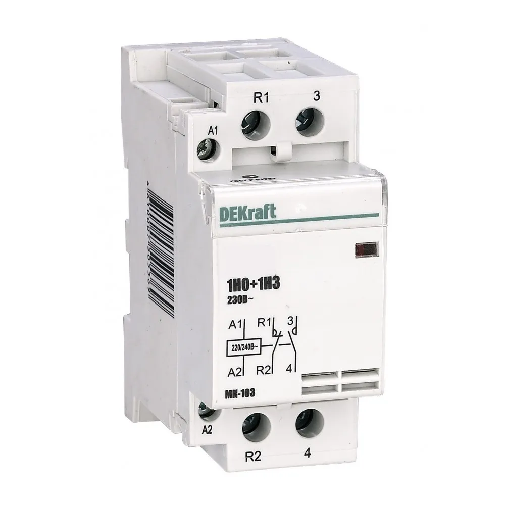 Модульный контактор серии МК-103 — это дистанционно управляемый коммутационный аппарат, позволяющий коммутировать нагрузки переменного тока. Контакторы имеют следующие основные узлы: контактную и дугогасительные системы, электромагнит управления. Модульные контакторы не требуют дополнительных настроек и специального обслуживания. Монтируются на стандартную 35 мм DIN-рейку.