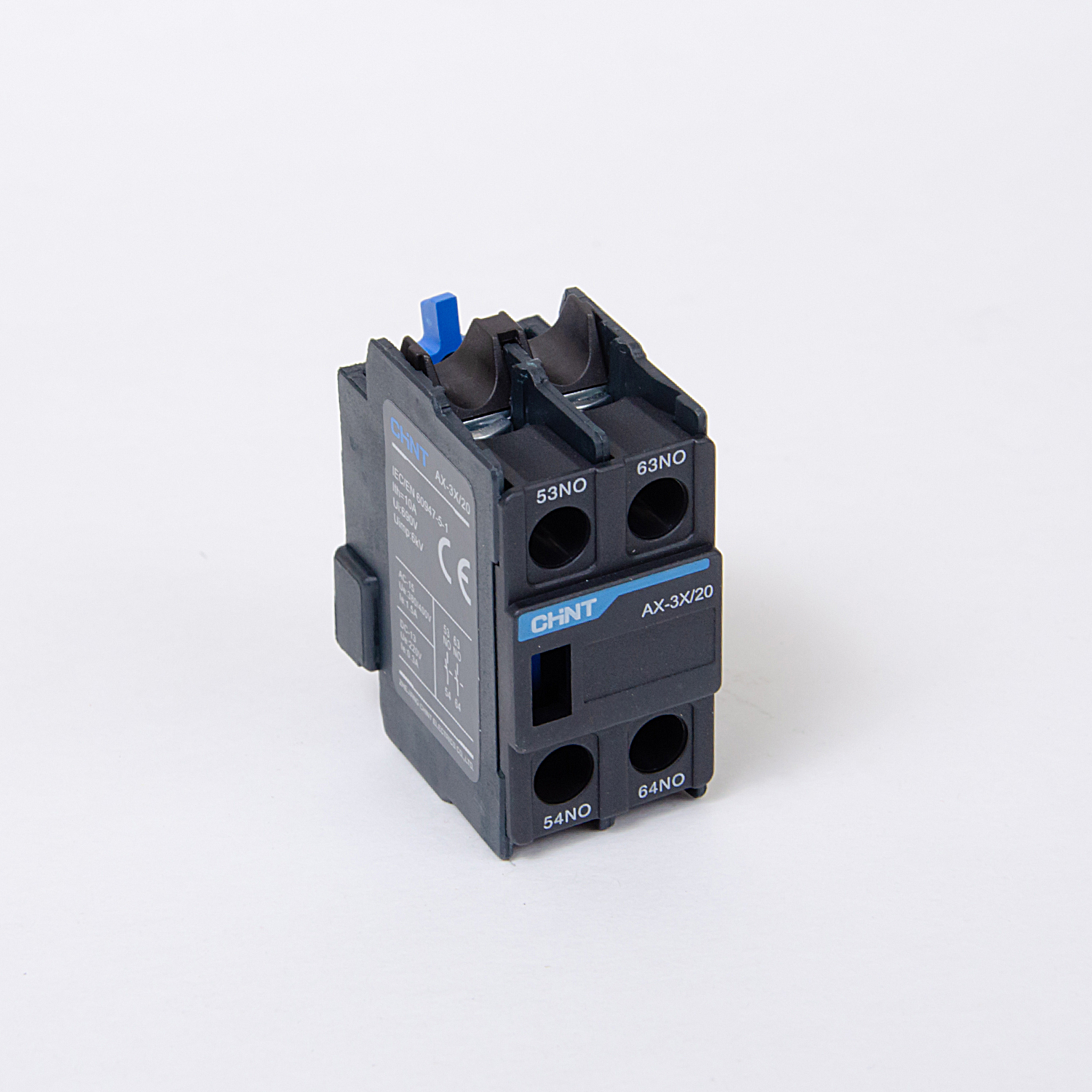 AX-3X/20 — вспомогательные контакты фронтальной установки для контакторов Сhint серии NXC. Контактные приставки также выпускаются с другими комбинациями контактов и выдержкой времени. Для универсальных NXC доступны контакты бокового монтажа: AX-3C/11. Контакты совместимы со всеми номиналами контакторов, на один контактор можно установить два модуля: фронтальный и боковой.