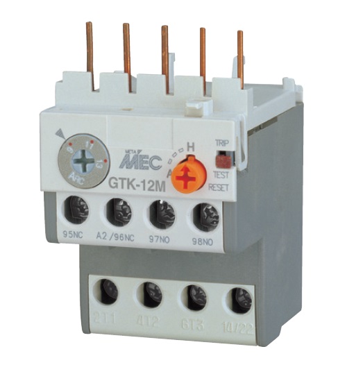 Тепловое реле GTK предназначено для защиты двигателей или цепей переменного тока от перегрузки, обрыва фазы. Реле постоянно контролирует ток, протекающий через него. При превышении уставки, вспомогательные контакты реле изменяют свое состояние и вызывают остановку электродвигателя, если они подключены в разрыв цепи управления катушкой контактора.