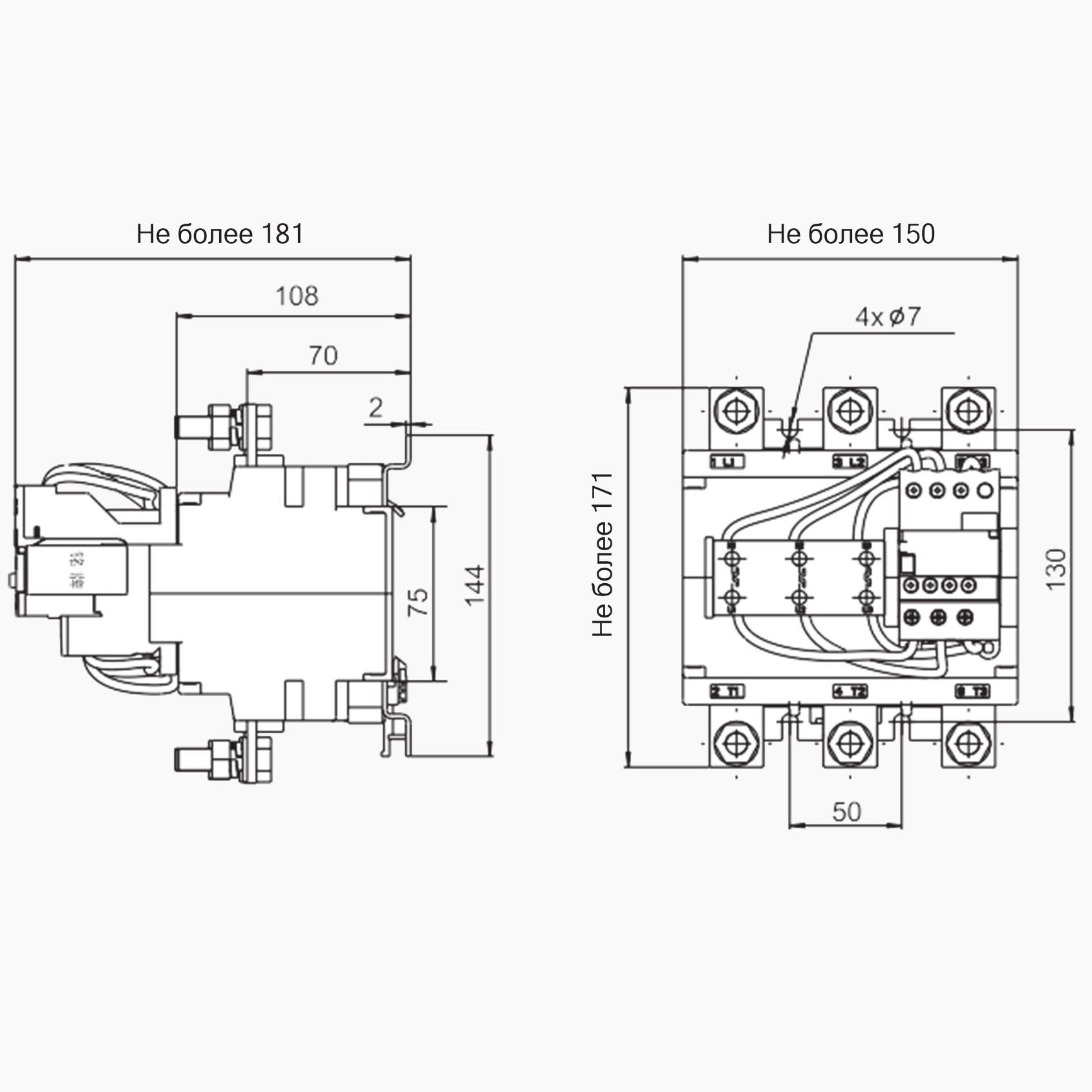 Тепловое реле РТ-02 совместимы с контакторами КМ-102 и КМ-103 (115А-630А) DEKraft.