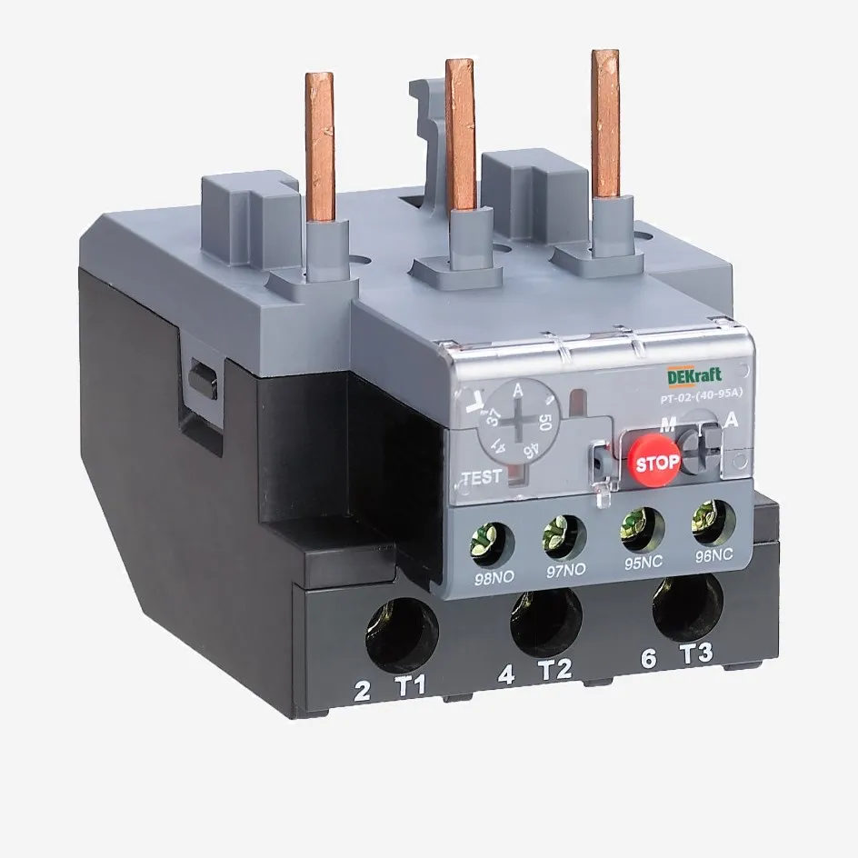 Тепловое реле РТ-02 совместимы с контакторами КМ-102 и КМ-103 (115А-630А) DEKraft.
