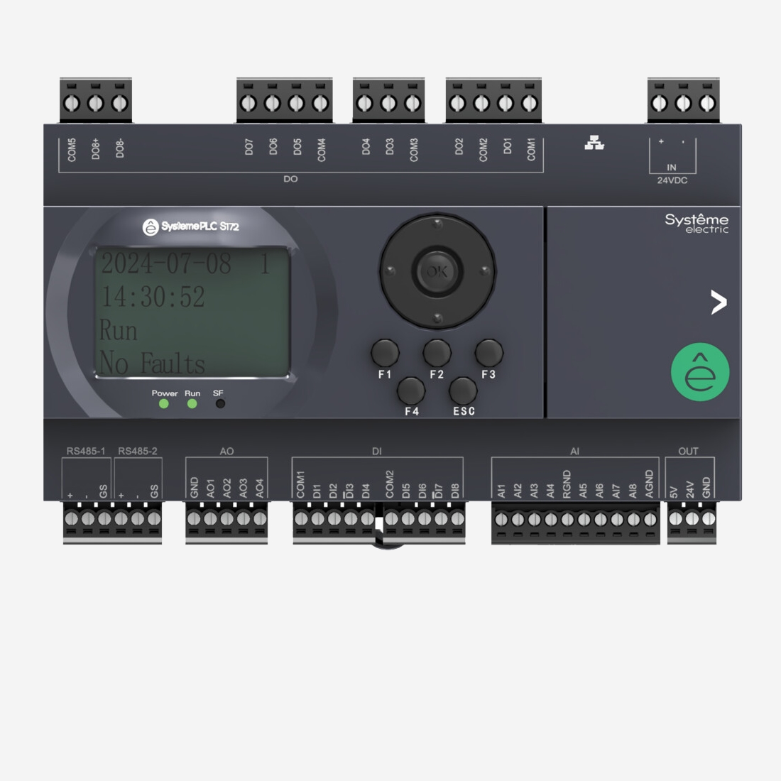 SM172PS11BDT | ПЛК S172; 24 VDC; дисплей; 28 IO: 8 DI, 8 DO (транзистор), 8 AI, 4 AO; 2xRS485, 1xRJ45, Systeme Electric