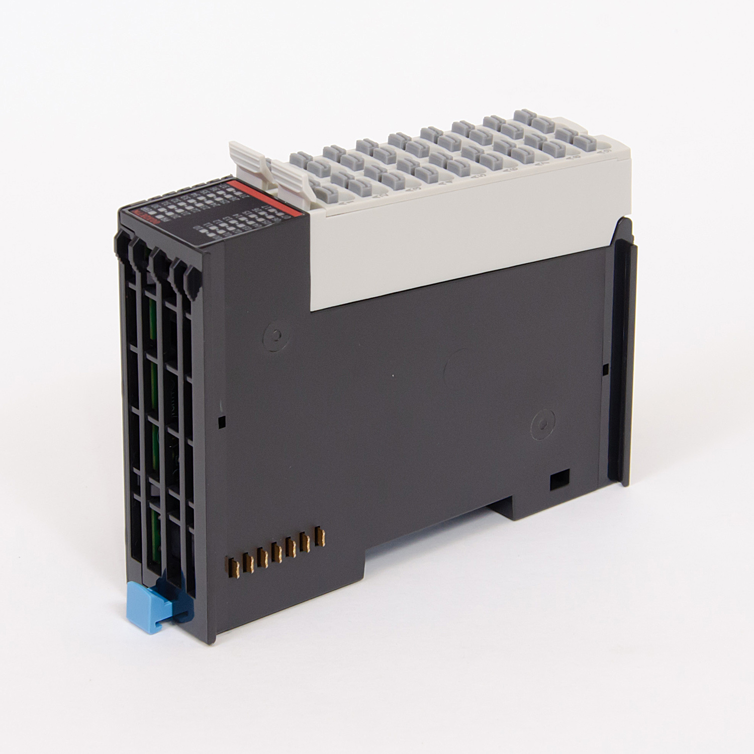 Выходы оснащены светодиодной индикацией состояния, рабочее напряжение 24В DC, активная нагрузка – 0,5А на канал, 8А на модуль