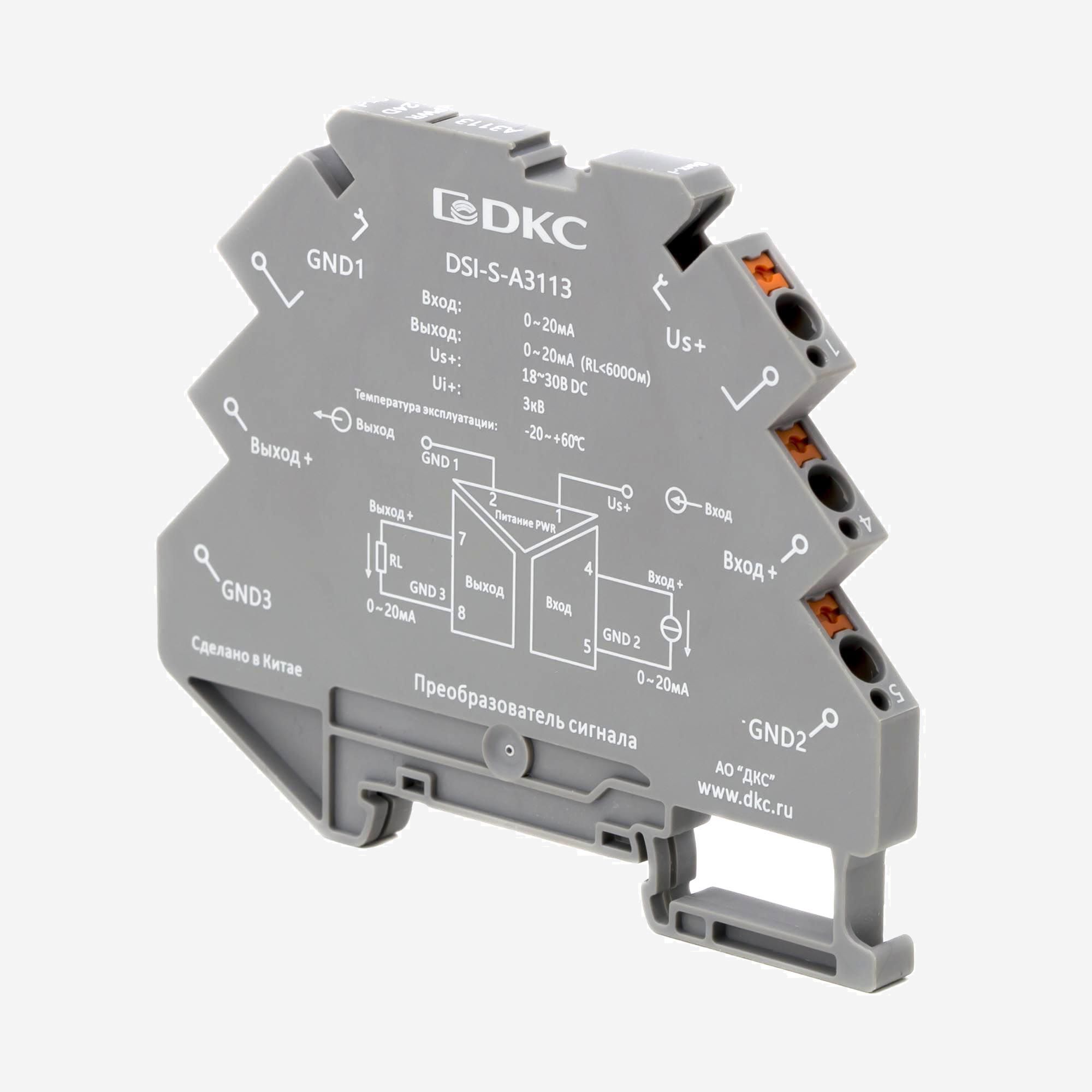 dkcDSI-S-A3113 | Преобразователь сигнала DSI-S, 6,2 мм 1 вход 0…20 мА, 1 выход 0…20 мА, DKC