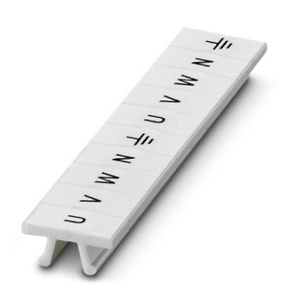 Представляет из себя планку, содержащую 10 маркировочных табличек размером 6,15 х 10,5 мм. На таблички уже нанесены символы от ''U, V, W, N, GND''.