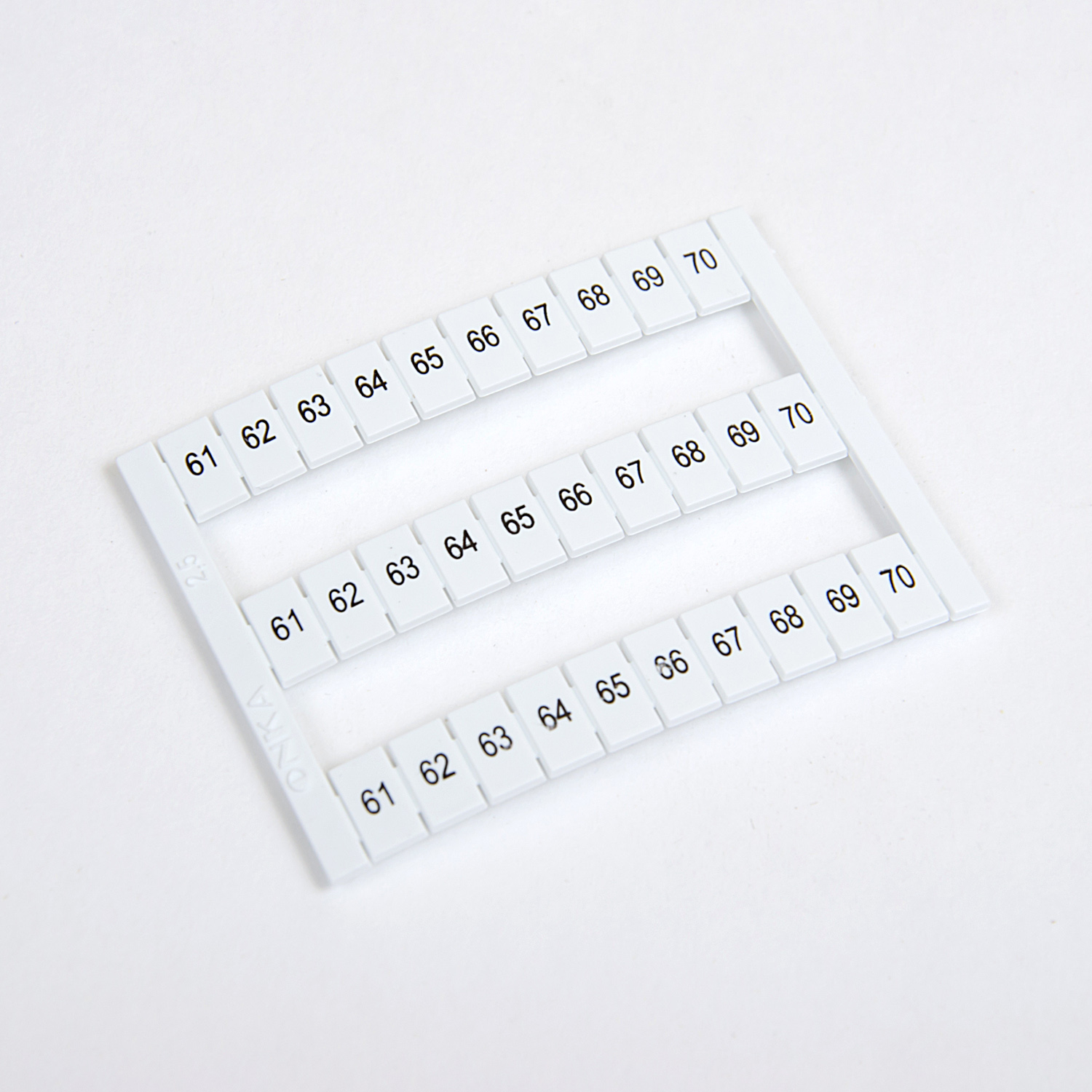 Маркировка клемм OD10 для клемм ONKA с заводским нанесением надписей. Подходит для клемм MRK 2,5. MRK 4S. OPK 2,5. OPK 4S и концевых стопоров. Поставляется кратно 1 пластине. В каждой пластине 30 отдельных маркеров скреплённых между собой.