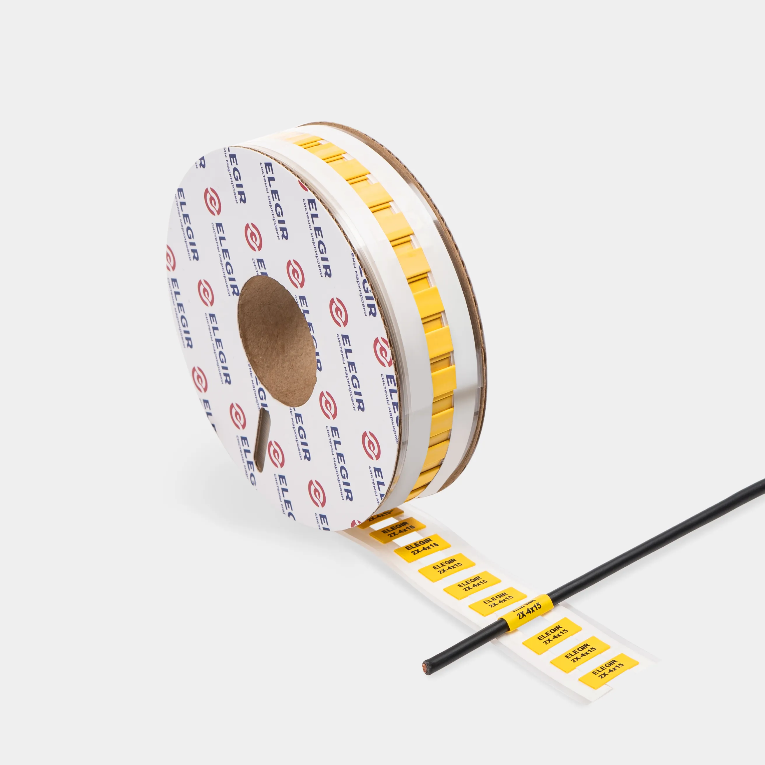 Маркер термоусадочный MFSS - это плоский полиолефиновый кембрик на клейкой ПЭТ-подложке для термотрансферной печати с возможностью термоусадки. Маркер термоусадочный MFSS-2X-4-15-Y предназначен для маркировки провода Ø 4/2 мм (0,5 — 2,5 мм²)