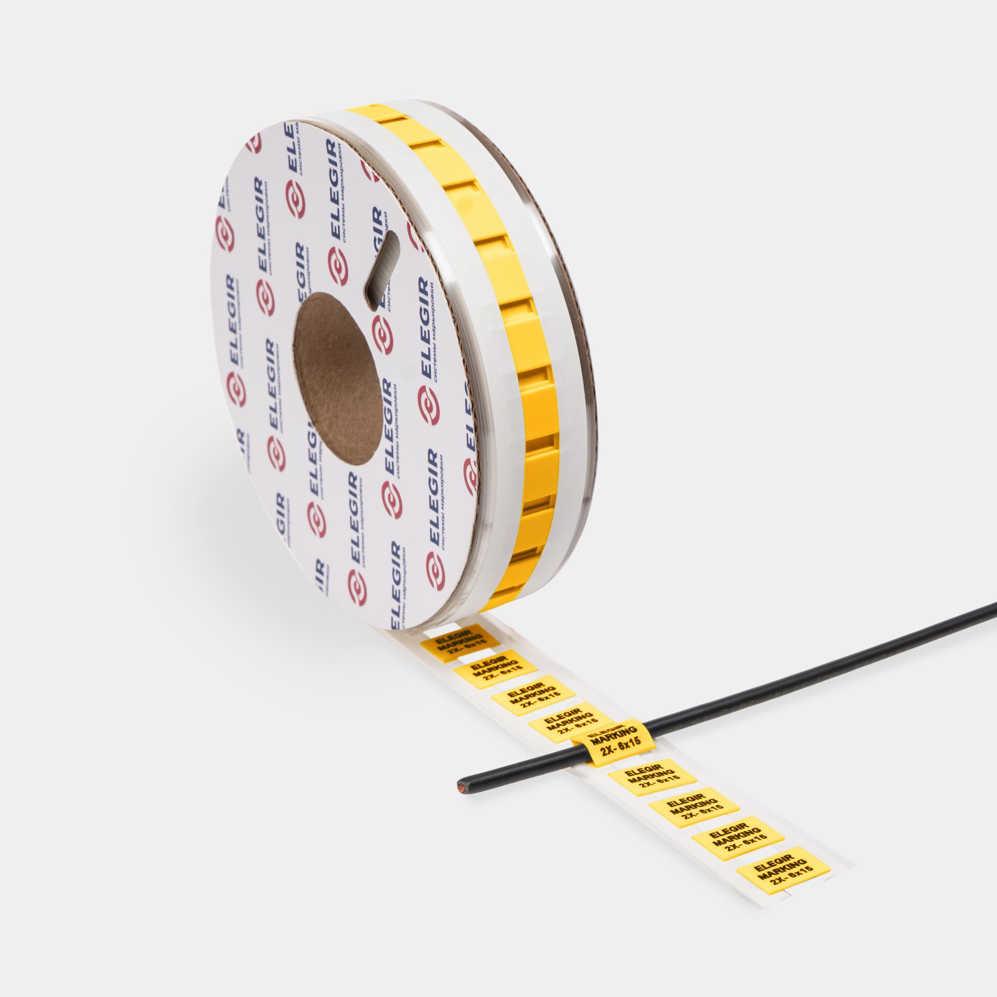 Маркер термоусадочный MFSS - это плоский полиолефиновый кембрик на клейкой ПЭТ-подложке для термотрансферной печати с возможностью термоусадки. Маркер термоусадочный MFSS-2X-6-15-Y предназначен для маркировки провода Ø 6/3 мм (1,5 — 6 мм²)