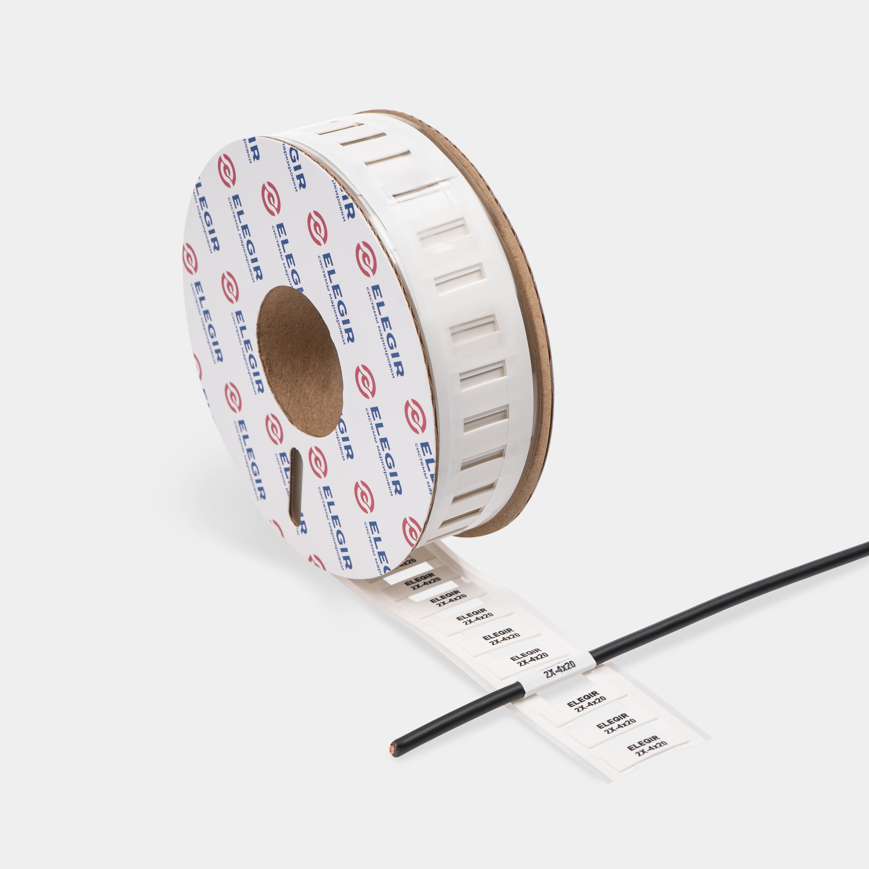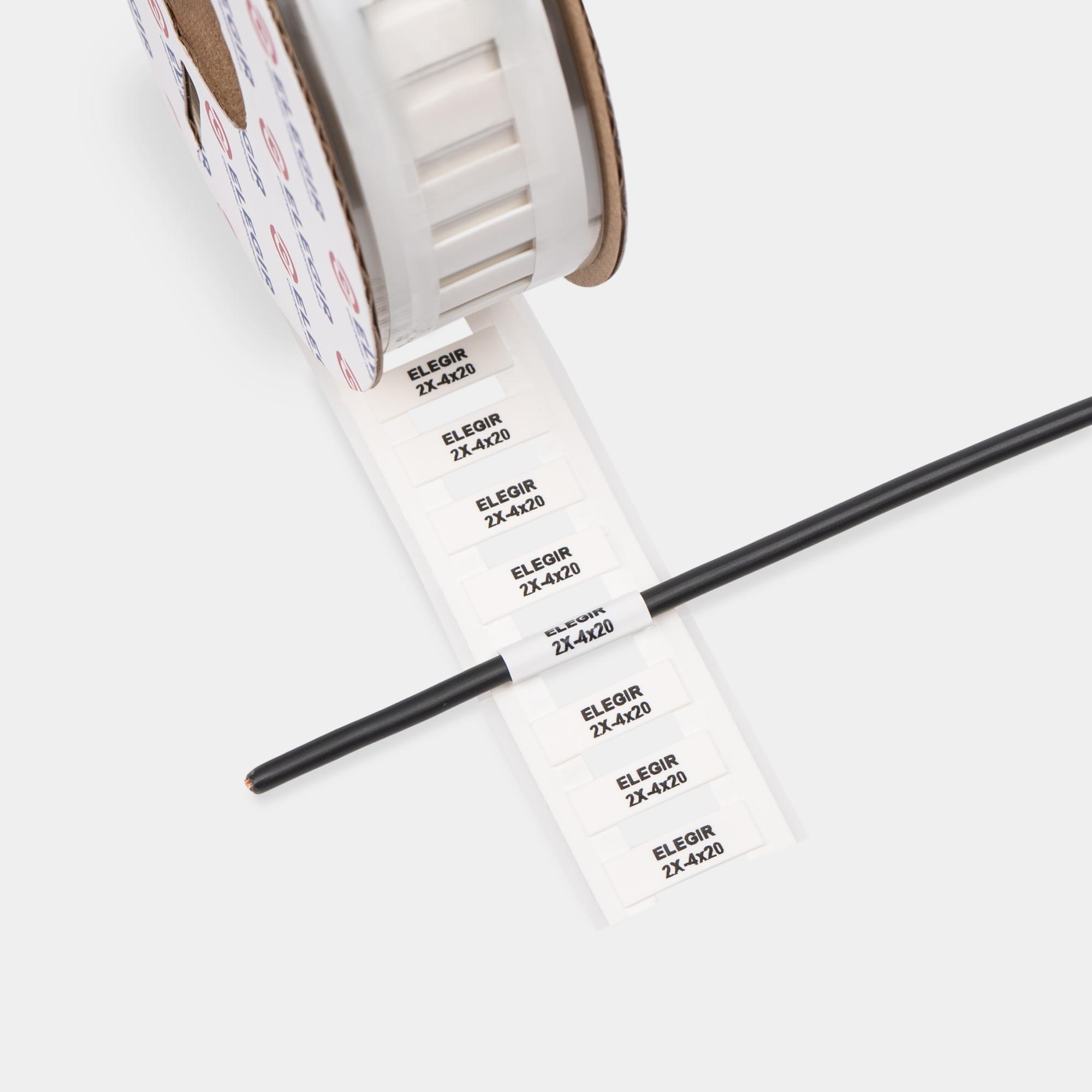 Маркер термоусадочный MFSS - это плоский полиолефиновый кембрик на клейкой ПЭТ-подложке для термотрансферной печати с возможностью термоусадки
