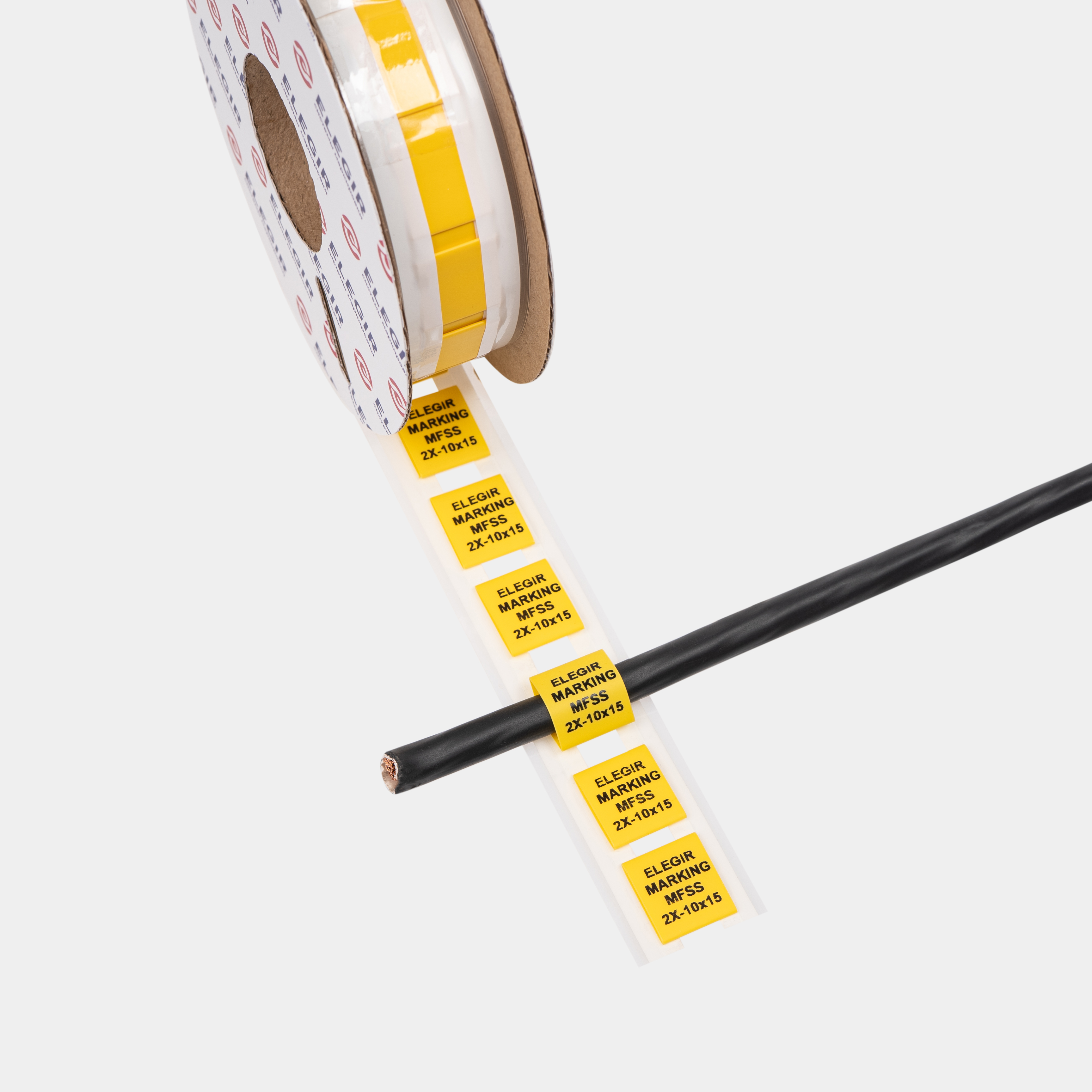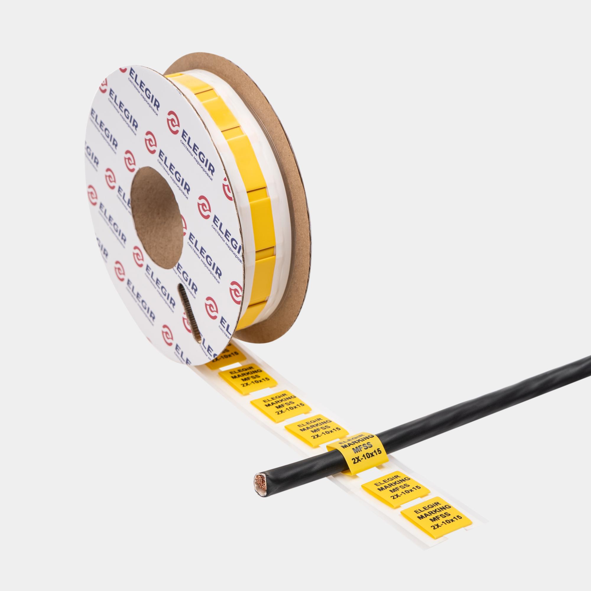Маркер термоусадочный MFSS Elegir - это плоский полиолефиновый кембрик на клейкой ПЭТ-подложке для термотрансферной печати с возможностью термоусадки
