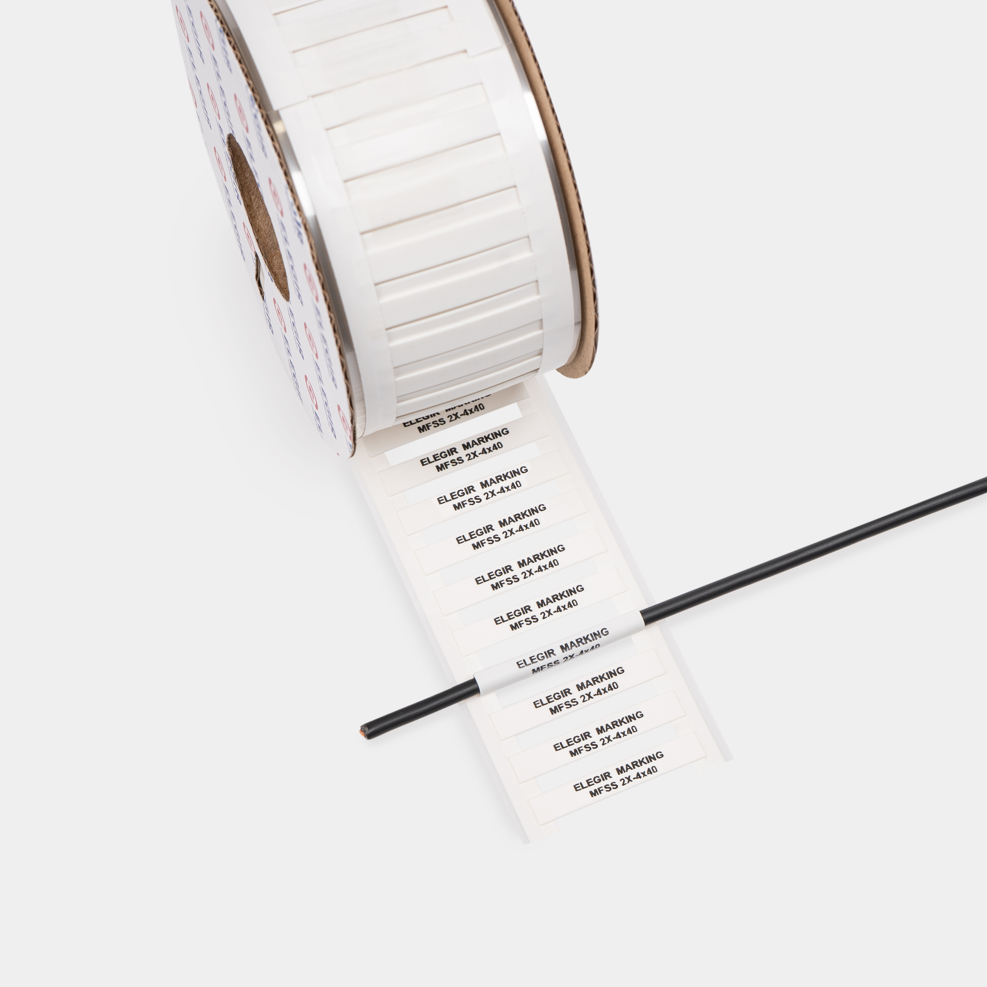 Маркер термоусадочный MFSS Elegir - это плоский полиолефиновый кембрик на клейкой ПЭТ-подложке для термотрансферной печати с возможностью термоусадки