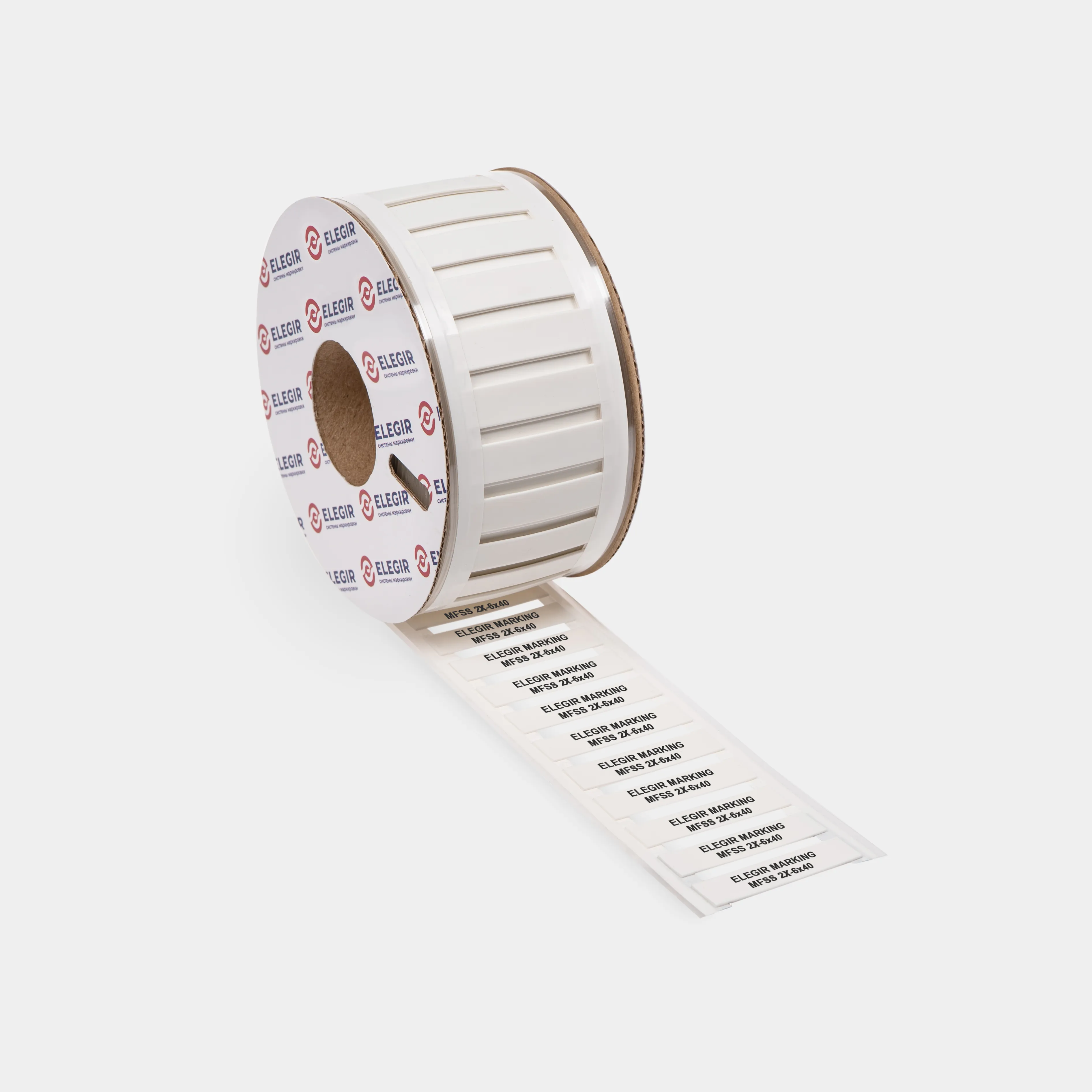 Маркер термоусадочный MFSS Elegir - это плоский полиолефиновый кембрик на клейкой ПЭТ-подложке для термотрансферной печати с возможностью термоусадки
