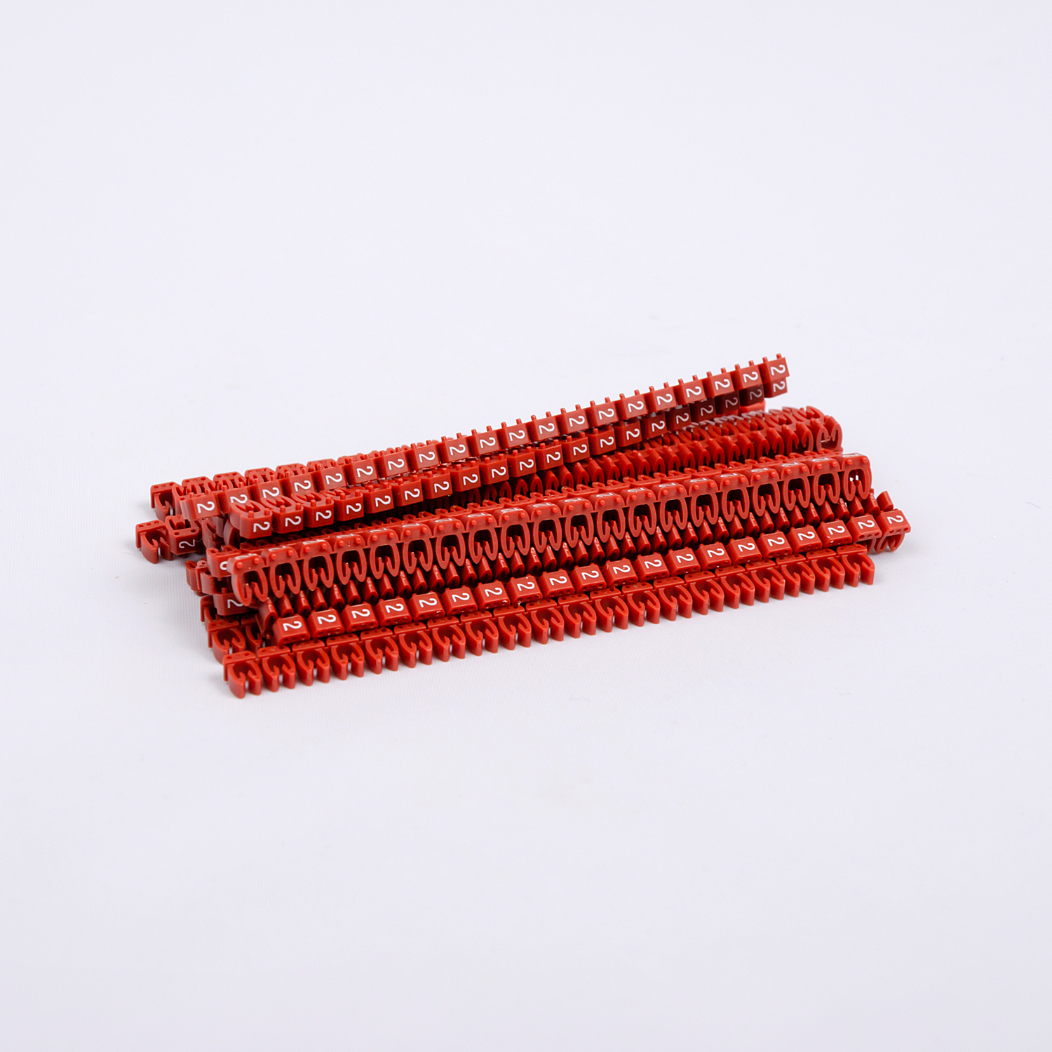 Самая удобная маркировка провода из наборных. Её профиль открытый и она может монтироваться уже после подключения провода. Ни клемма, ни наконечник не помешают установить маркеры. Из-за встроенных замков, скрепляющих отдельные маркеры, она не перекручивается между собой. Каждый маркер добавляет прочности рядом стоящему усиливая его фиксацию. Числовые знаки связаны с цветом маркера. (только числовые) Если надпись стереть, то число можно будет определить по цвету.