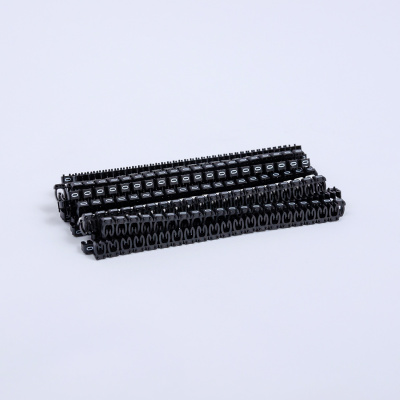 Самая удобная маркировка провода из наборных. Её профиль открытый и она может монтироваться уже после подключения провода. Ни клемма, ни наконечник не помешают установить маркеры. Из-за встроенных замков, скрепляющих отдельные маркеры, она не перекручивается между собой. Каждый маркер добавляет прочности рядом стоящему усиливая его фиксацию. Числовые знаки связаны с цветом маркера. (только числовые) Если надпись стереть, то число можно будет определить по цвету.