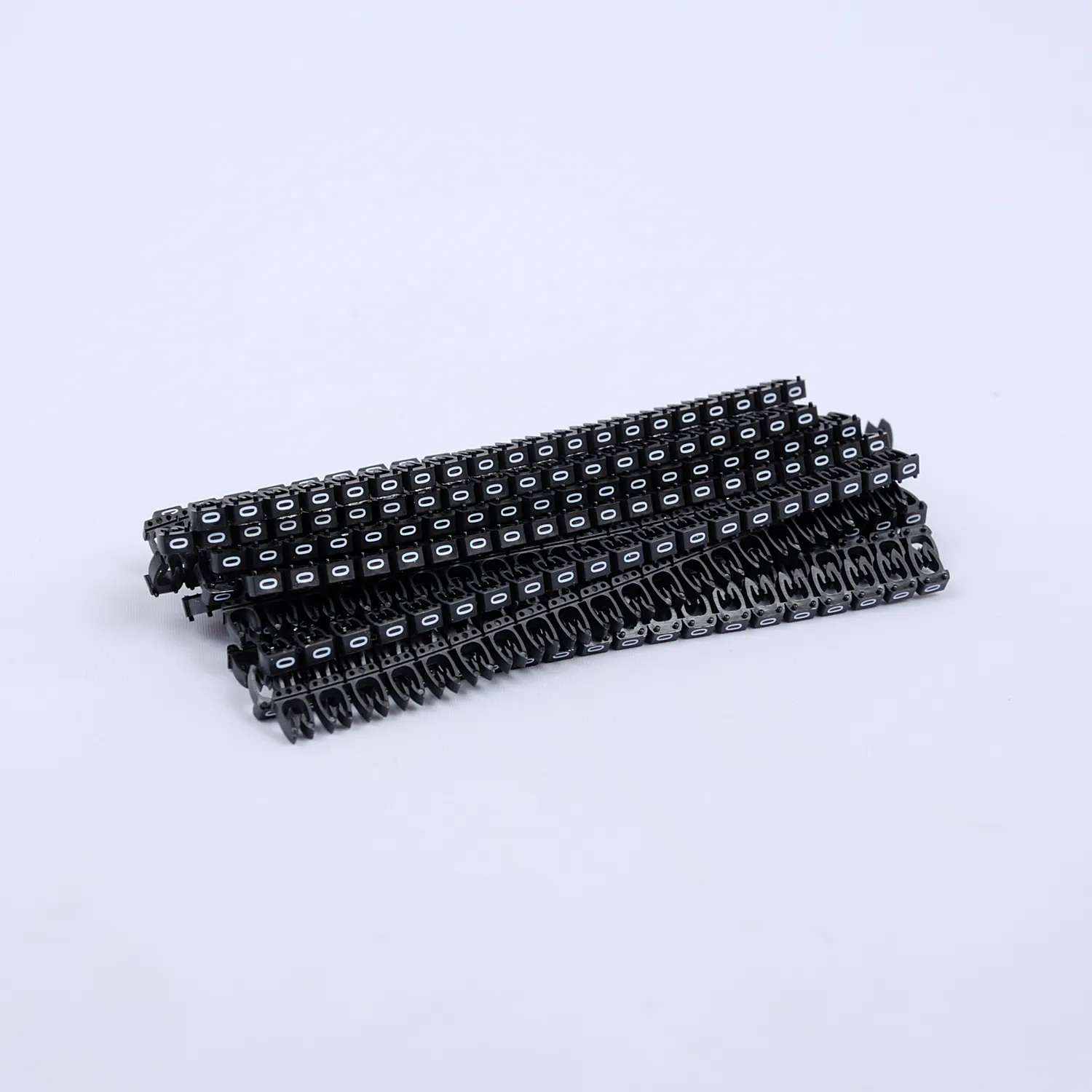 Самая удобная маркировка провода из наборных. Её профиль открытый и она может монтироваться уже после подключения провода. Ни клемма, ни наконечник не помешают установить маркеры. Из-за встроенных замков, скрепляющих отдельные маркеры, она не перекручивается между собой. Каждый маркер добавляет прочности рядом стоящему усиливая его фиксацию. Числовые знаки связаны с цветом маркера. (только числовые) Если надпись стереть, то число можно будет определить по цвету.
