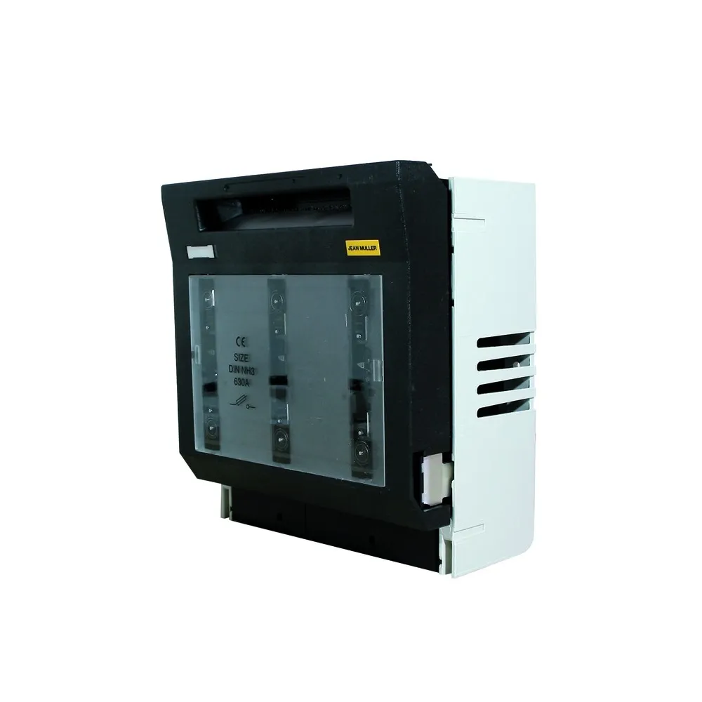 LV-HRC –предохранители-выключатели-разъединители по EN 60947-3 с откидным устройством для установки трёх LV HRC-плавких вставок предохранителя согласно DIN 43620 габаритов 00-4а/160а-1600а. Исполнение габарита 4а/1250а имеет зажимной винт 1хМ16, габарита 4а/1600а - зажимные винты 2хМ12.