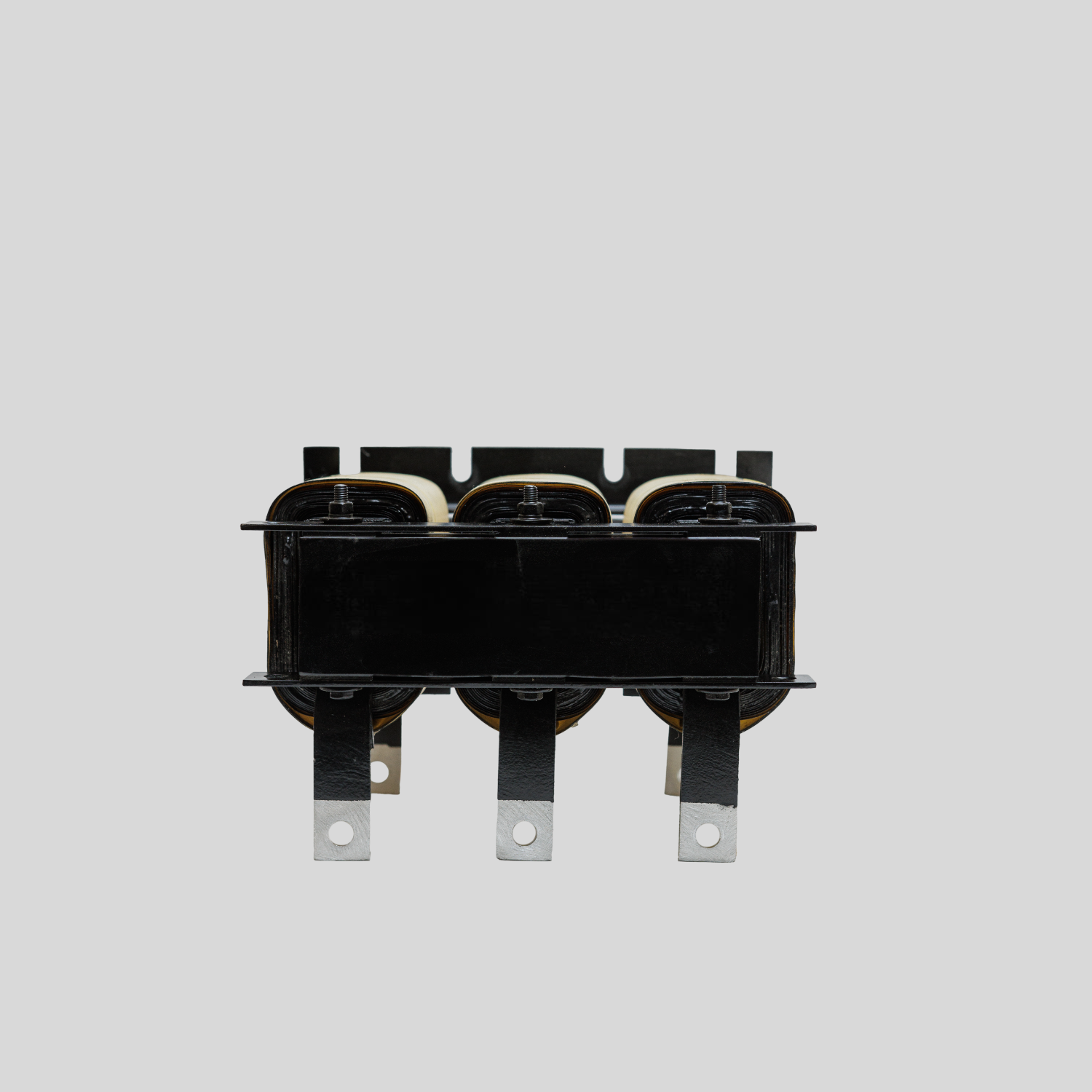 Моторный дроссель устанавливается между преобразователем частоты и двигателем. Представляет собой трехфазную катушку индуктивности, намотанную на магнитный сердечник.