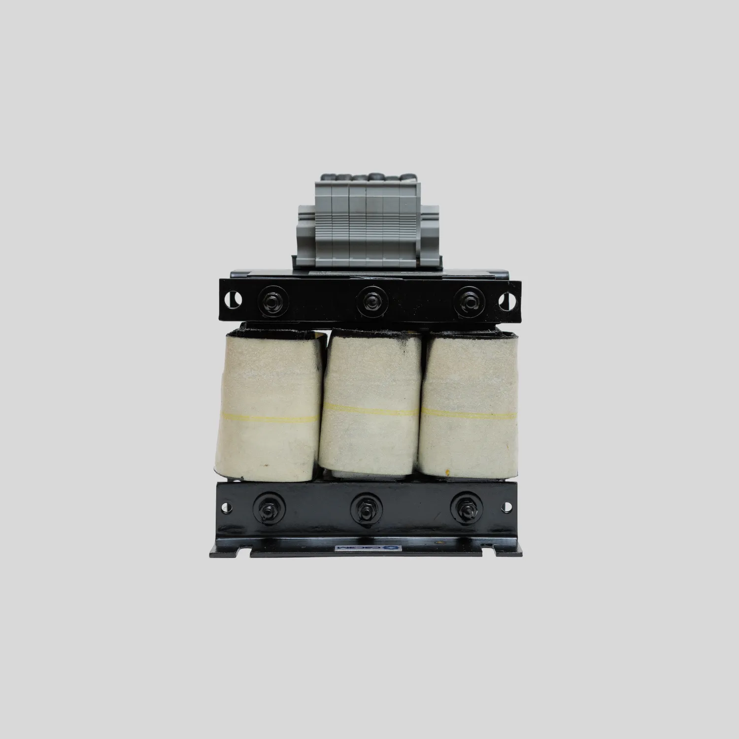 Моторный дроссель устанавливается между преобразователем частоты и двигателем. Представляет собой трехфазную катушку индуктивности, намотанную на магнитный сердечник.