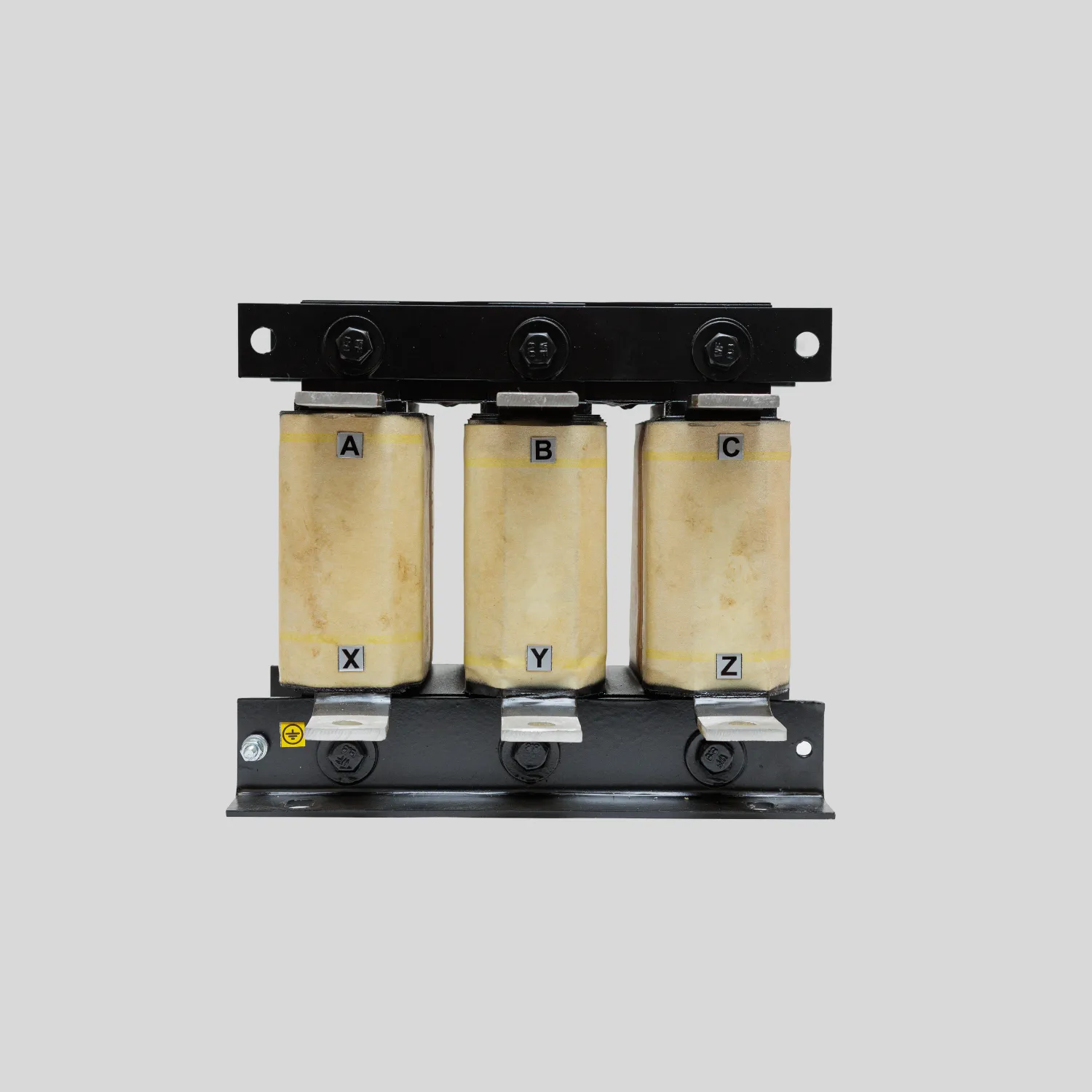 Сетевой дроссель представляет собой трехфазную катушку индуктивности, намотанную на магнитный сердечник. Служит двухсторонним буфером между питающей сетью и преобразователем частоты.