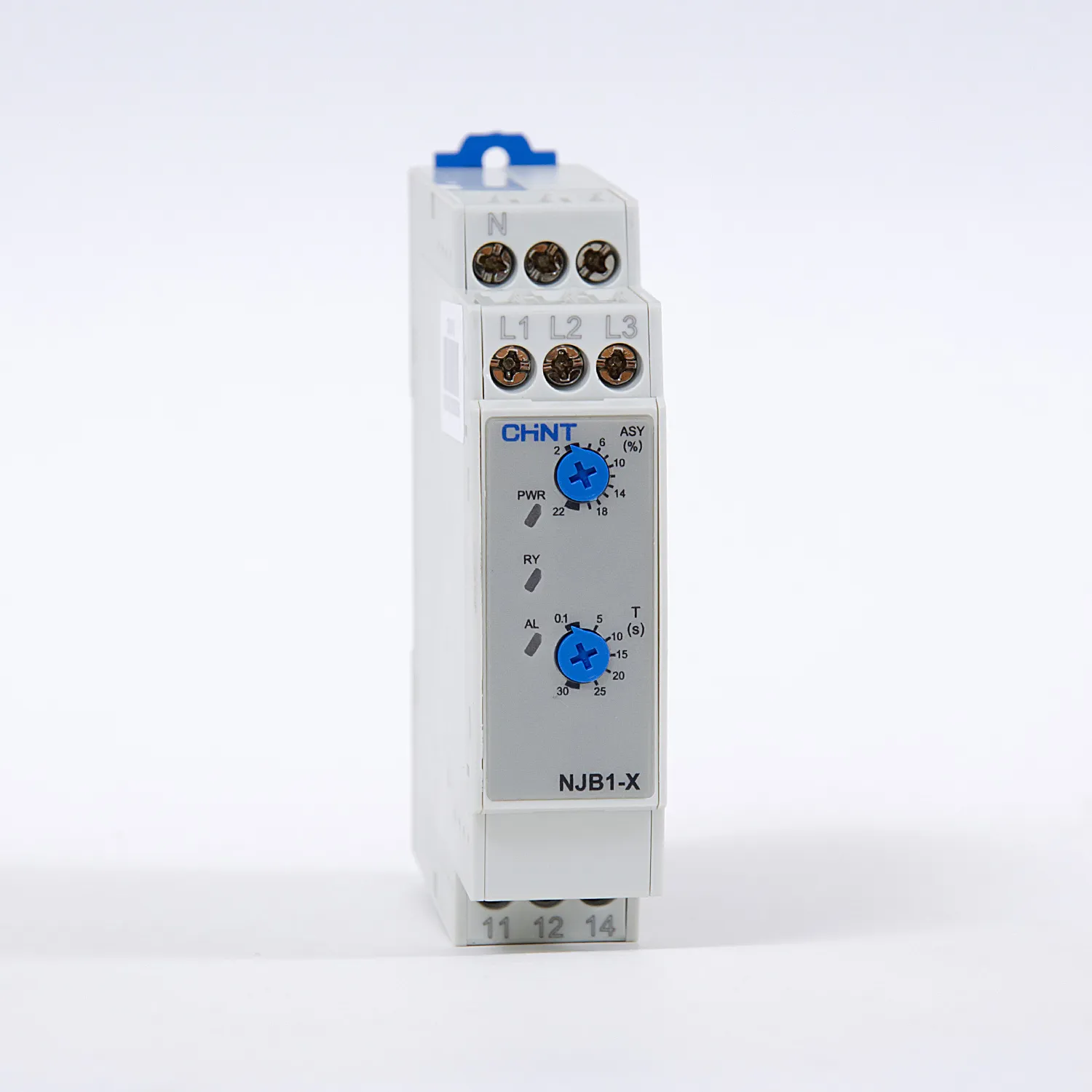 Реле контроля фаз NJB1-X (далее «реле») используются в цепях управления 380–480 В переменного тока с частотой 50/60 Гц в качестве элементов для защиты последовательности фаз, контроля обрыва фаз и несимметрии фаз и замыкают или размыкают силовую цепь. Реле с истинным действительным значением трехфазного напряжения обеспечивает надежную рабочую защиту.