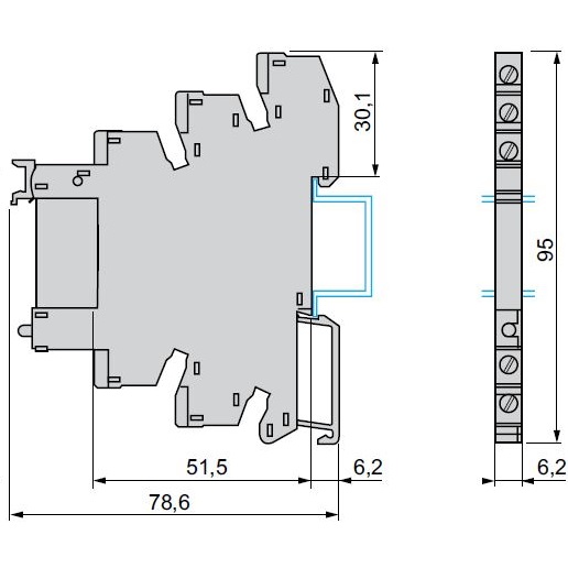 Тонкие интерфейсные реле Schneider Electric для установки в розетку шириной 6,2мм. В серию входят реле с 1 CO (перекидным контактом) на 6 А, а также реле со слаботочным контактом.
