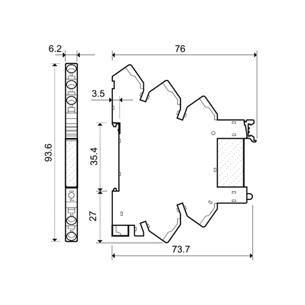 Модуль реле в сборе с розеткой и готовый к монтажу на DIN-рейку. Состоит из реле 348170059024 и розетки 93517024.