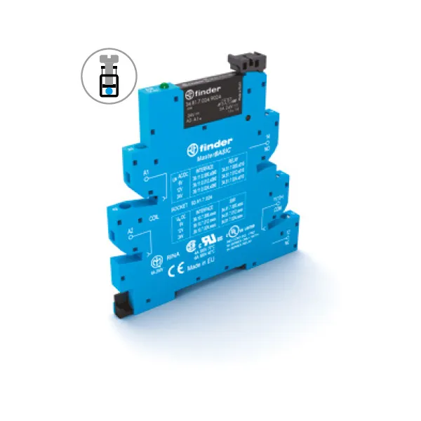 Модуль реле в сборе с розеткой и готовый к монтажу на DIN-рейку. Состоит из реле 348170249024 и розетки 93617024.