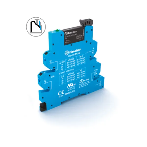 Модуль реле в сборе с розеткой и готовый к монтажу на DIN-рейку. Состоит из реле 348170129024 и розетки 93607024.