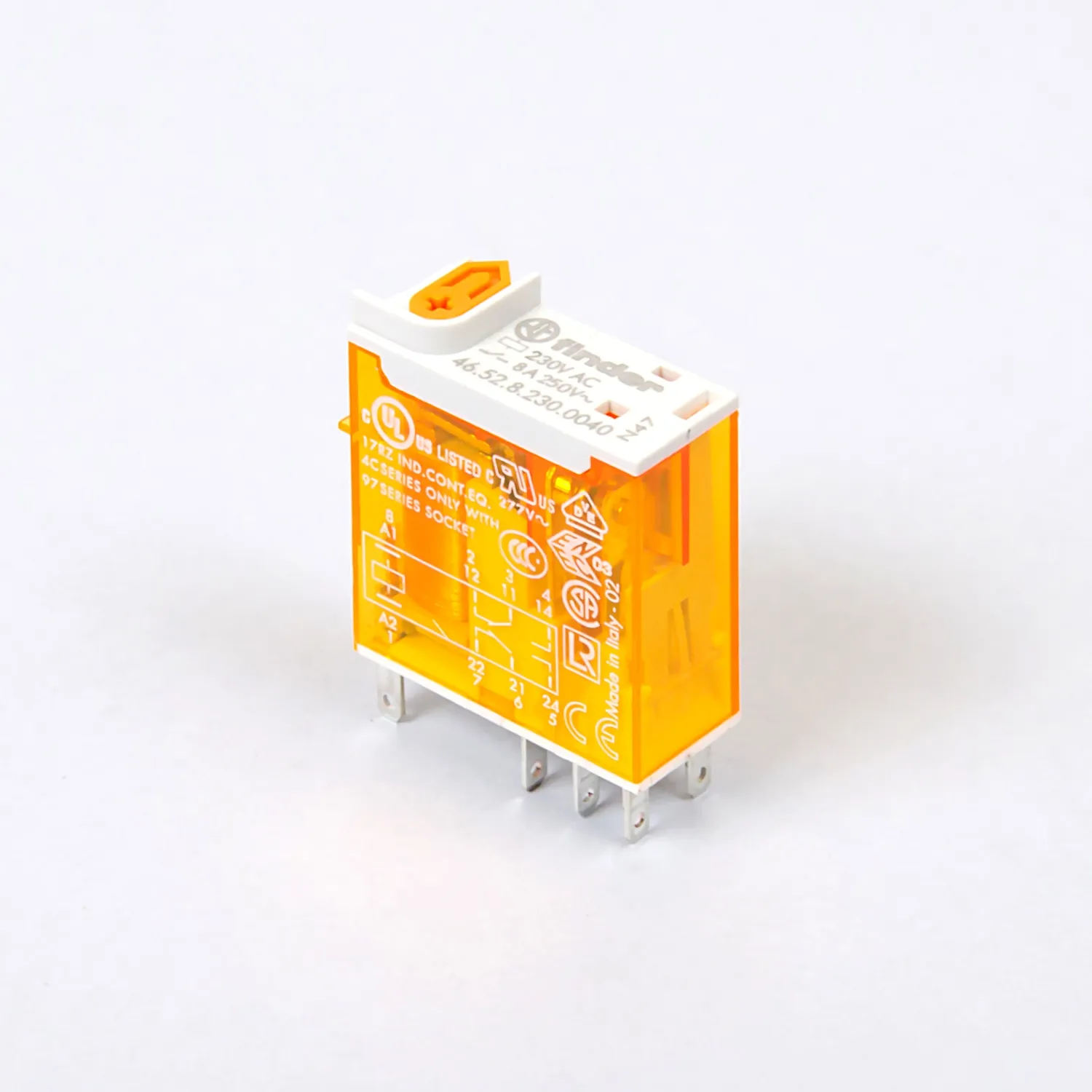 Универсальное реле Финдер, 46 серии для монтажа в розетку 97 серии или подключение через разъемы Faston.
