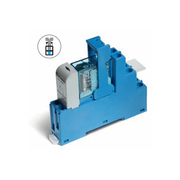 Модуль реле в сборе с розеткой и готовый к монтажу на DIN-рейку. Состоит из реле 40.52.8.230.0000, модуля 99.02.0.230.98 и розетки 95.05SPA.