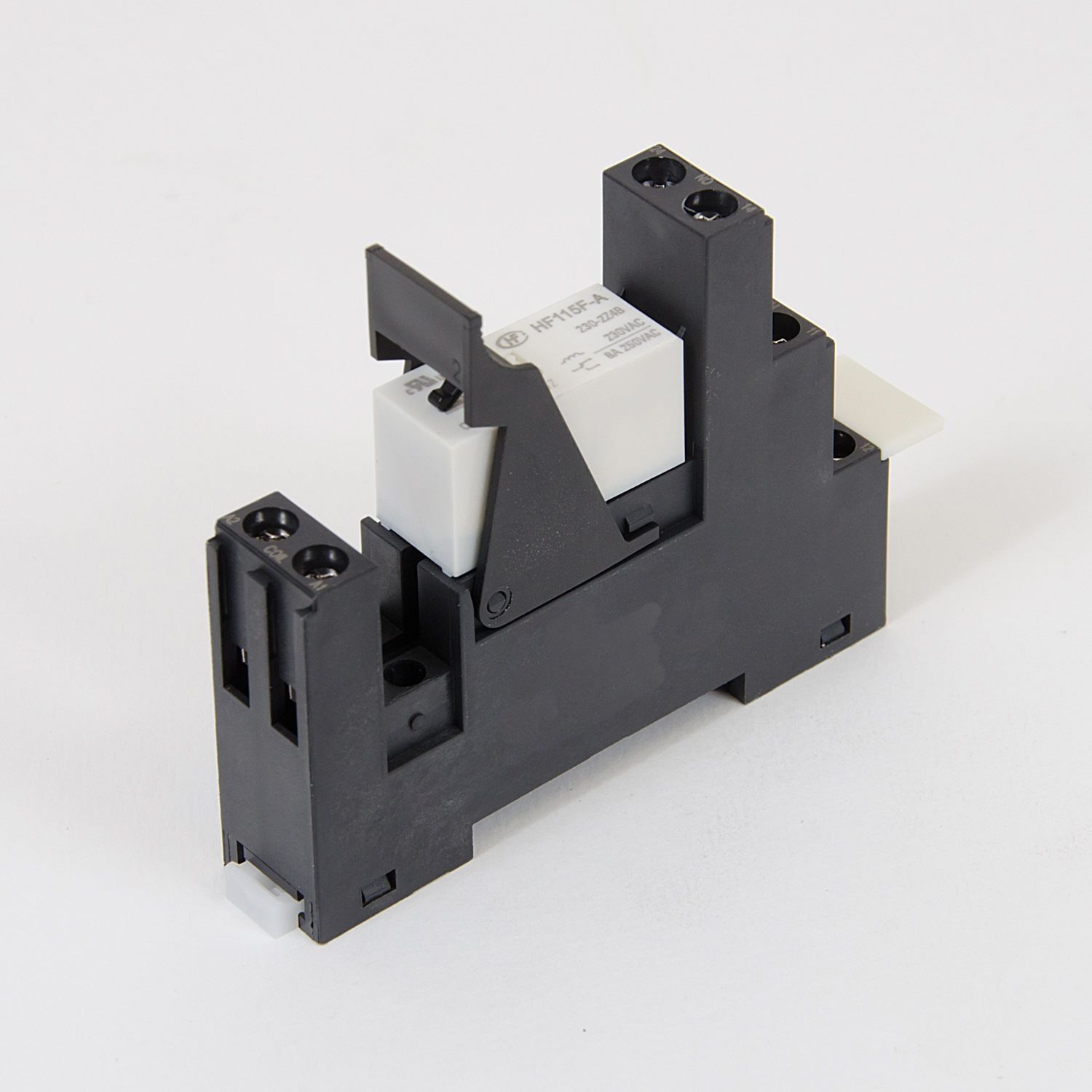 HF115-230AC-2 | Комплект реле: колодка винт,пластик.клипса,маркер + реле Hongfa 2CO 8A; AgNi; катушка 230B AC