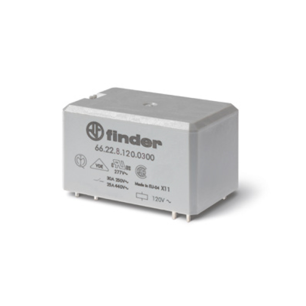 662282301300 | Реле для монтажа на печатную плату серии 66.22, управление 230В AC, контакты AgNi 2NO 30А, Finder