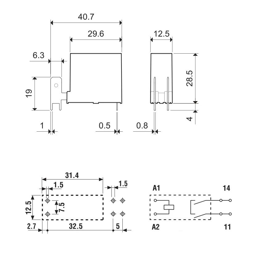 — Изоляция между катушкой и контактами 8 мм, 6кВ (1,2/50мкс).