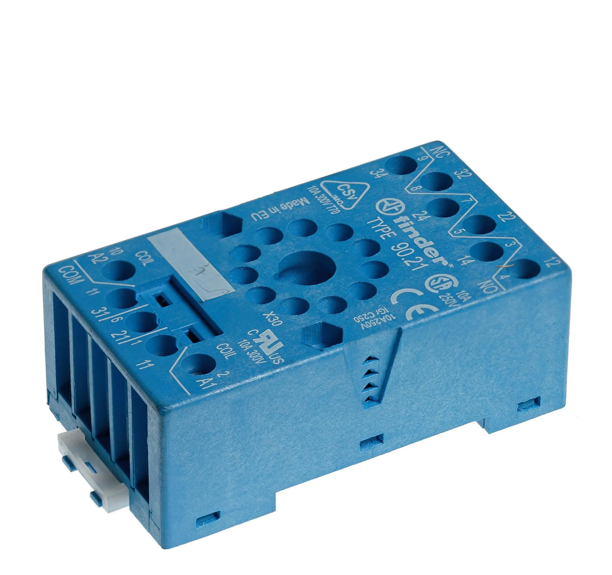 Пластиковая розетка синего цвета с винтовыми зажимами для реле Finder 60.12, таймера 88.12, применяются модули 99.01.
