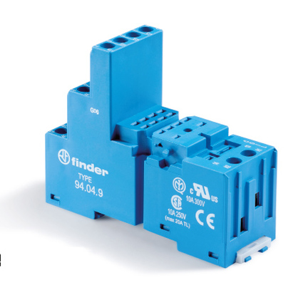 Пластиковая розетка синего цвета с винтовыми зажимами для реле Finder 55.33, таймера 85.03, применяются модули 86.00, 99.02.