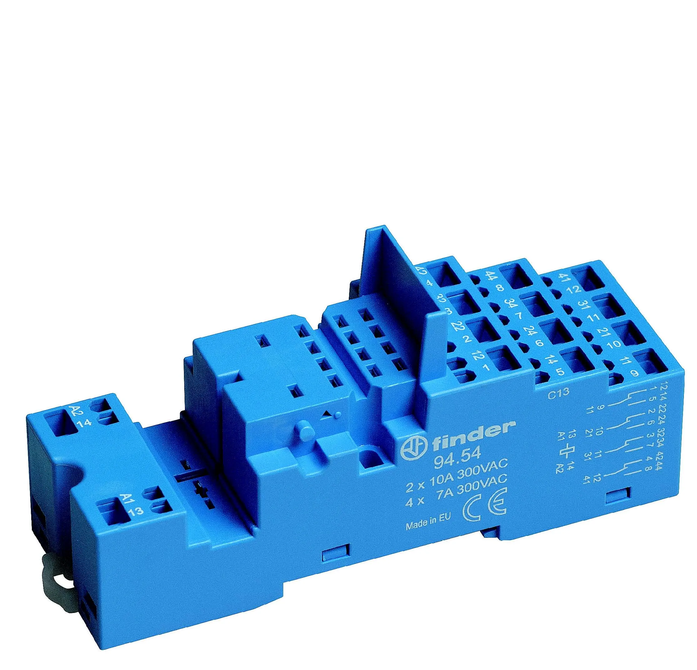 Пластиковая розетка синего цвета с пружинными зажимами для реле Finder 55.32, 55.34, таймера 85.02, 85.04, применяются модули 99.02.