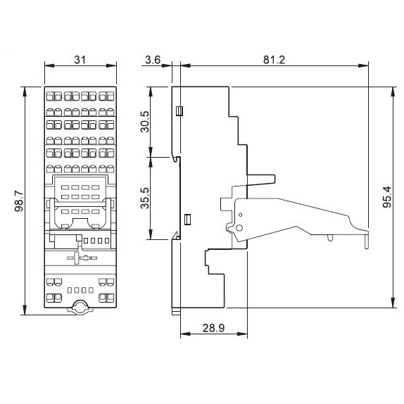 Предназначена для сборки в единое изделие реле и дополнительных модулей и установки на монтажную поверхность или 35мм. din-рейку