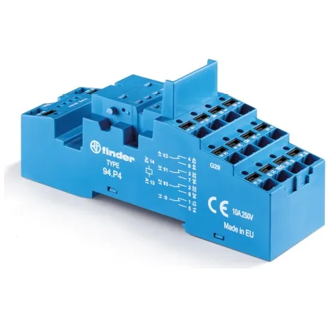 Пластиковая розетка синего цвета с безвинтовыми клеммами Push-in для реле Finder 55.32, 55.34, таймера 85.02, 85.04, применяются модули 86.00, 99.02.