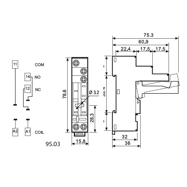 9503SPA | Розетка 1P, с пластиковой клипсой и винтовыми клеммами, для реле 40.31, Finder