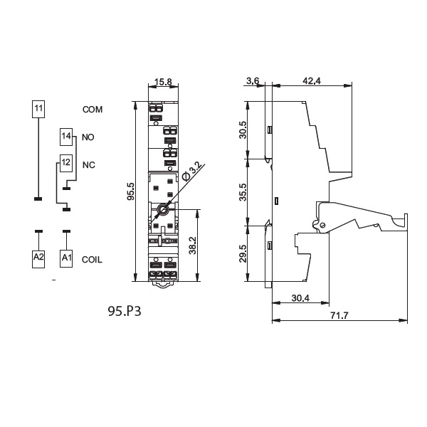 95P3SPA | Розетка 1P, с пластиковой клипсой и безвинтовыми клеммами Push-in, для реле 40.31, Finder