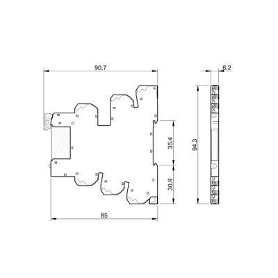 Предназначена для сборки в единое изделие с реле и установки на 35мм din-рейку.