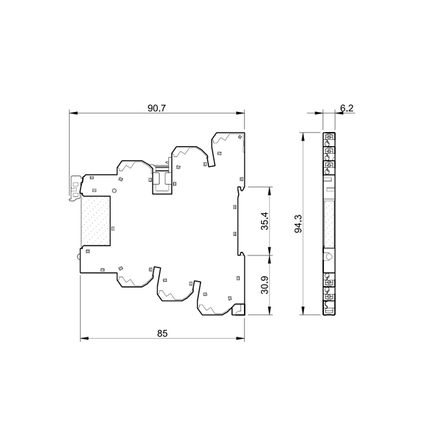 Предназначена для сборки в единое изделие с реле и установки на 35мм din-рейку.