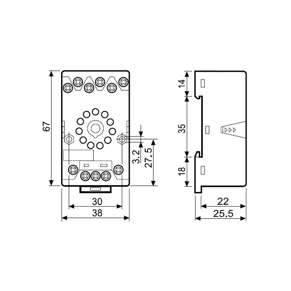 Предназначена для сборки в единое изделие реле и дополнительных модулей и установки на монтажную поверхность или 35мм. din-рейку