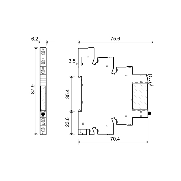 Предназначена для сборки в единое изделие с реле и установки на 35мм din-рейку.